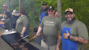 Each year, Prince Frederick Masonic Lodge volunteers at the Calvert County’s End Hunger Bike Ride by grilling the burgers for the participants.